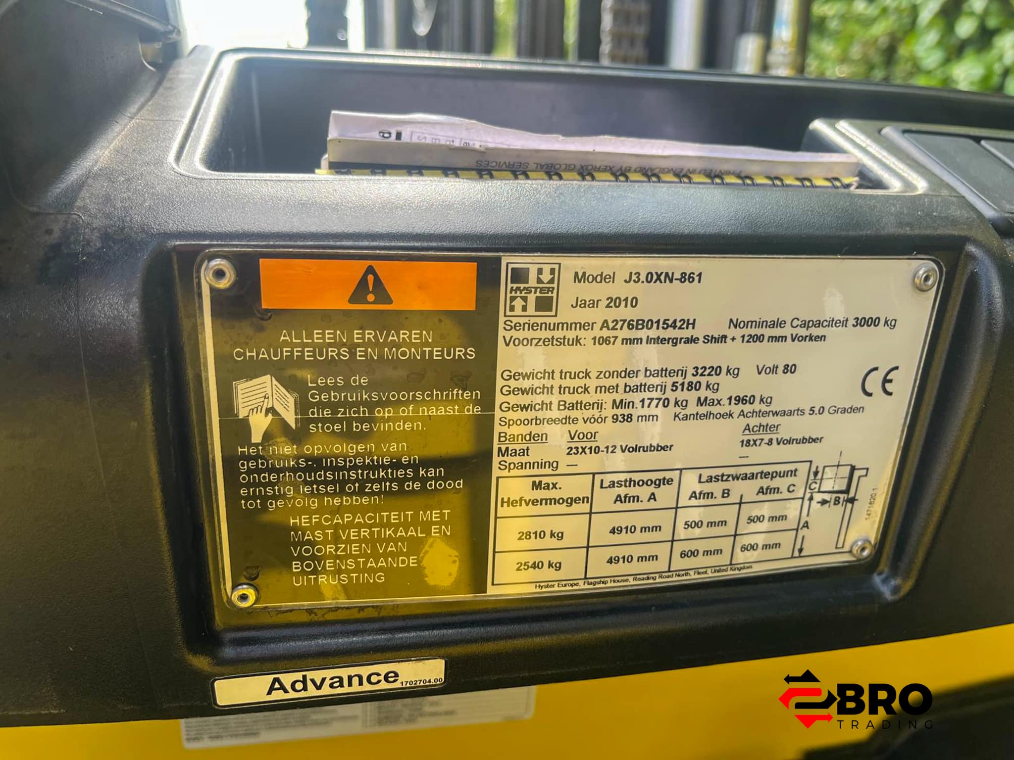 | KEURING | De heftruck word afgeleverd met een nieuwe BMWT-KEUR Keuring |
