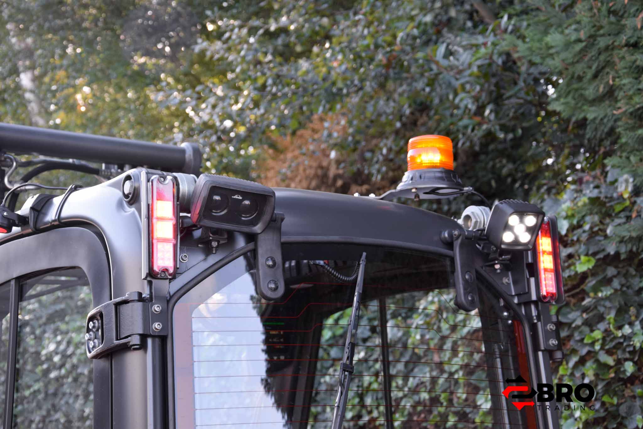 • Accessoires: Werk- en wegverlichting een oranje zwaailicht, bluespot, en rode zij verlichting voor verbeterde zichtbaarheid en veiligheid.