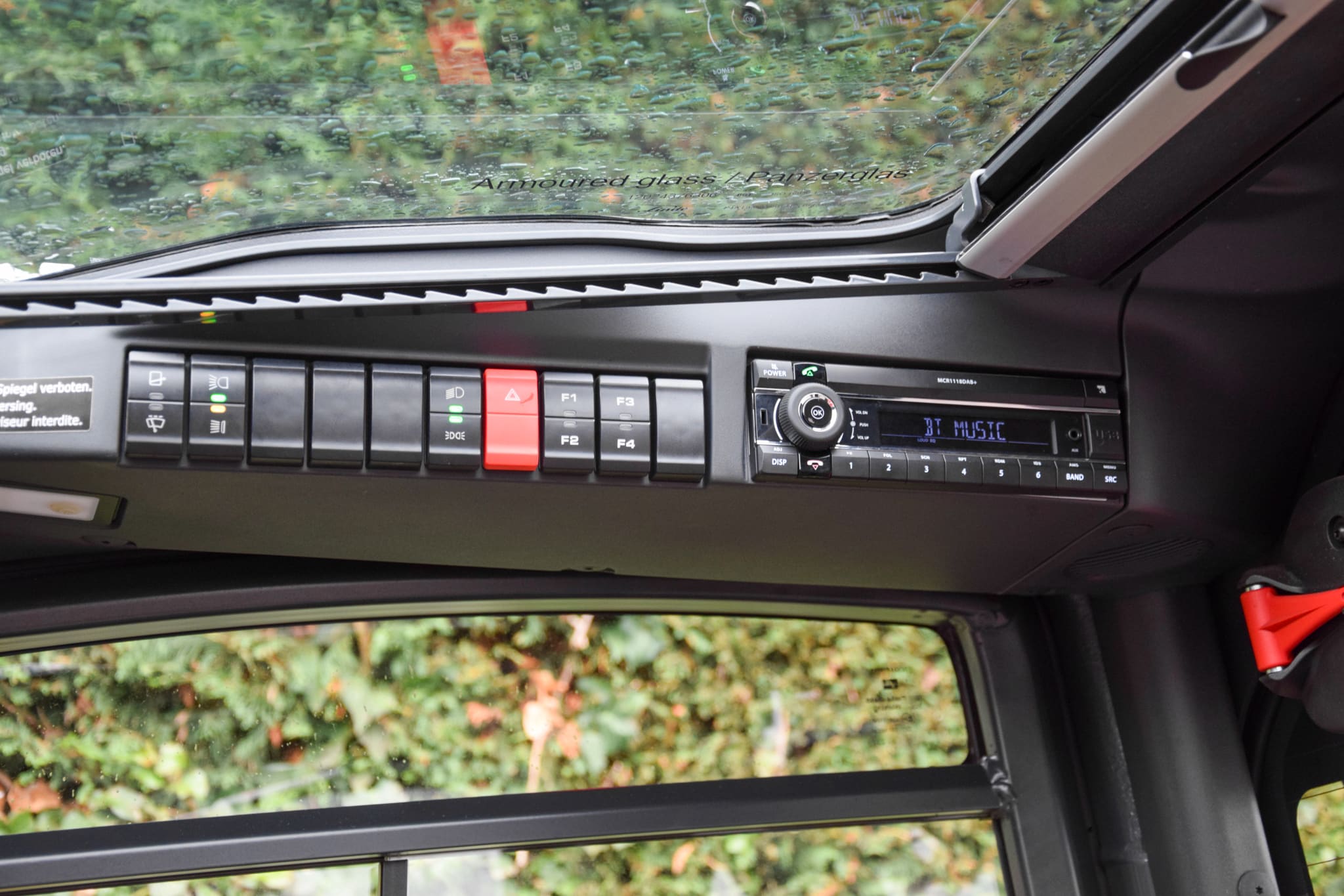• Voor-, achter- en boven ruit met ruitenwissers